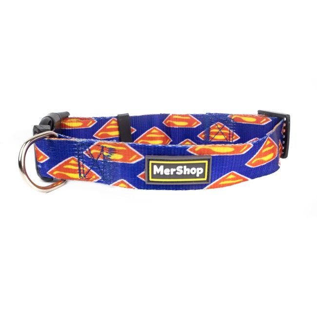 Collar estampado, cuenta con hebillas ajustables, broche de seguridad y anillo tipo D para fijar la correa. Material: Poliéster, metal