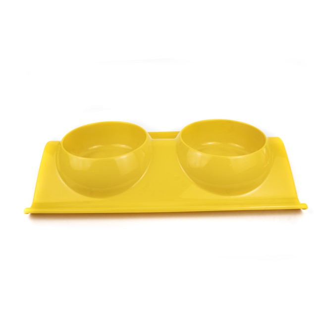 Comedero elevado, cuenta con dos recipientes. Material: Plástico Color: Morado, verde, azul, amarillo Disponible: Razas pequeñas y medianas. Medidas: Largo 38 cm * Ancho 25 cm Alto 7,5cm