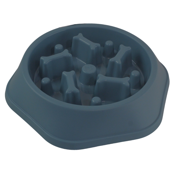 Comedero antirreflujo, cuenta con diseño especial ideal para estimular mentalmente a las mascotas mientras se alimentan. Promueve la alimentación lenta. Material: Plástico Color: azul petróleo, verde oliva, naranja Disponible: Razas pequeñas y medianas