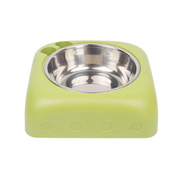 Comedero cuadrado con bowl removible, cuenta con adhesivos para decorar a los costados y piezas antideslizantes. Material: Plástico, metal Color: verde, azul, naranja Disponible: Razas pequeñas