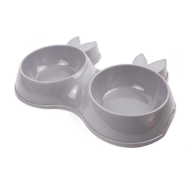 Comedero doble para mascotas, cuenta con bowl removibles. Material: Plástico Color: Gris, rosado Disponible: Razas pequeñas.