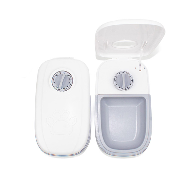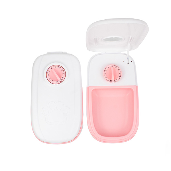 Comedero con temporizador, cuenta con recipiente fácil de limpiar y gomas antideslizantes. Programación de comida entre 0-48 horas cuando esté fuera de casa o para mantener un horario regular y controlar las porciones de comida. Diseño para mantener la comida fresca y protegido. Requiere pila AA. Material: Plástico Color: Gris, rosado Disponible: Razas pequeñas y medianas