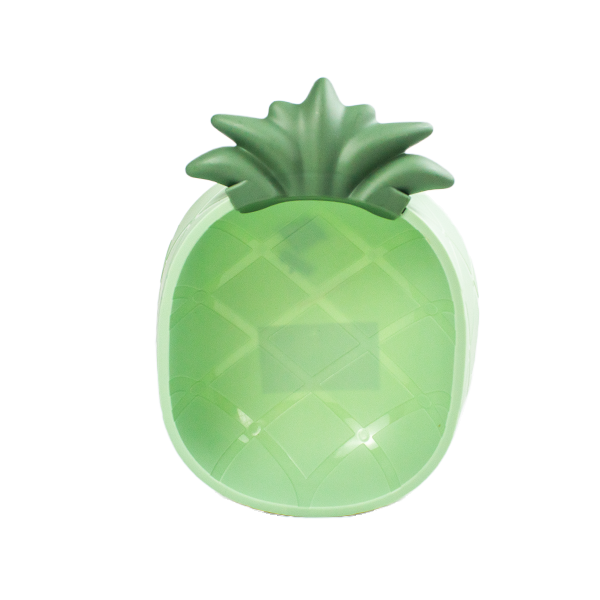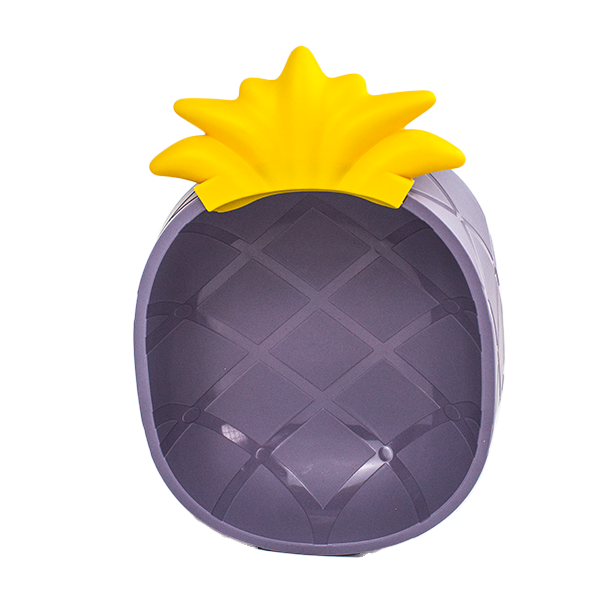 Comedero piña para mascotas. Cuenta con piezas antideslizantes. Material: Plástico Color: Verde, naranja, morado grisaceo Disponible: Razas pequeñas