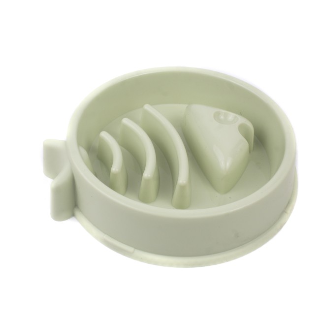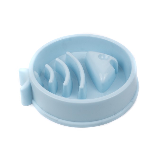 Comedero antirreflujo con diseño de pescado. Cuenta con antideslizantes. Material: ABS Color: Rosado, verde, azul Disponible: Razas pequeñas y medianas.
