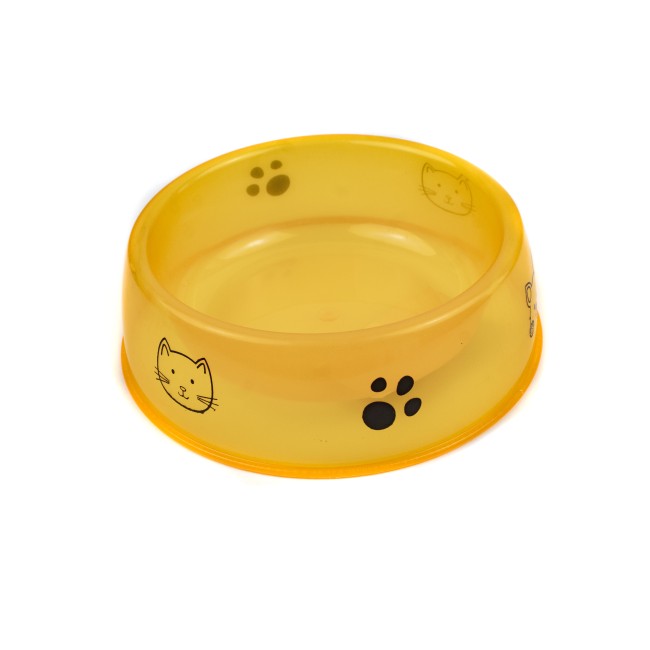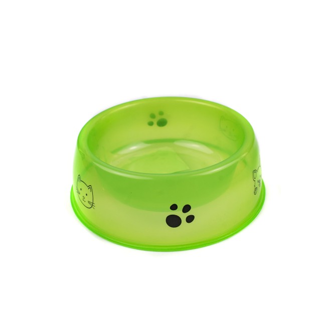 Comedero para mascotas redondo, cuenta con estampado en los costados. Material: Plástico Color: Verde, azul, naranja Disponible: Razas pequeñas y medianas.
