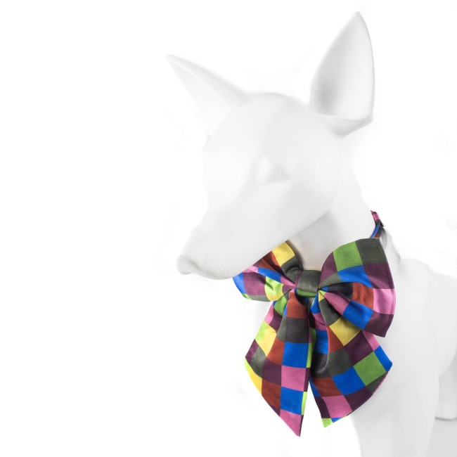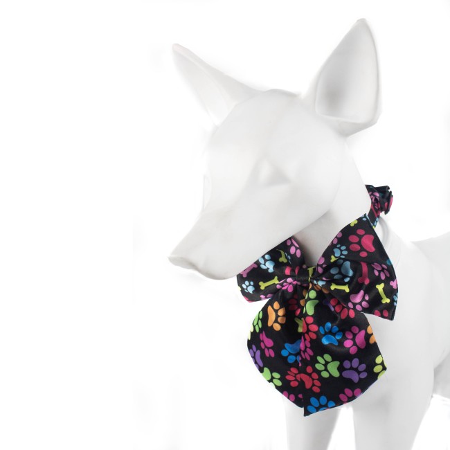 Corbatin estampado para mascotas, cuenta con broches de seguridad. Material: Poliéster Color/estampado: Azul huesos, negro huellas, rojo tipo tartán, rojo con azul, multicolor cuadros. Disponible: Razas medianas y grandes.
