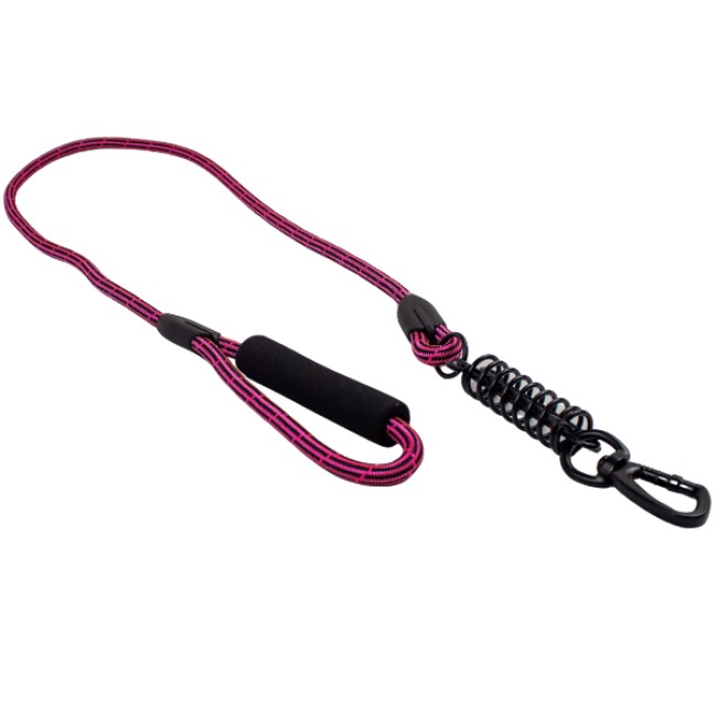 Correa bicolor con resorte anti-tirones y mango ergonomico. Material: Poliéster Color: Verde, rosado, azul Disponible: Razas pequeñas, medianas y grandes
