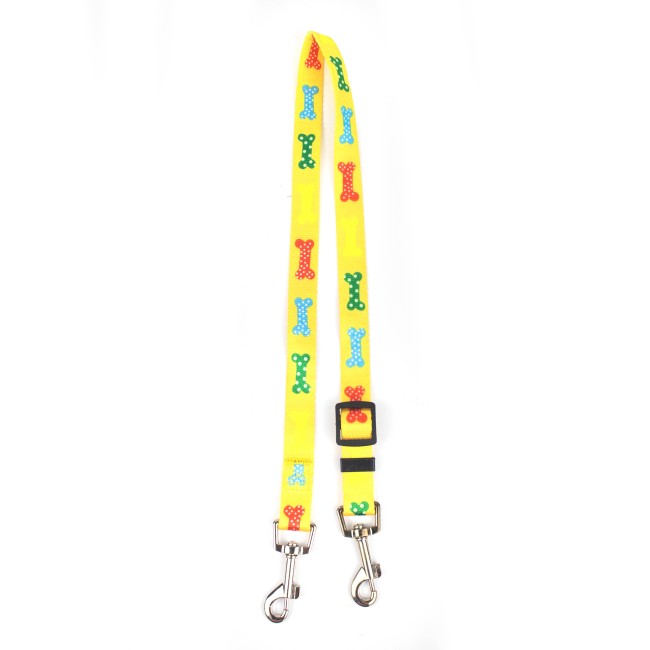 Correa estampada para ajustar al broche del carro. Material: Poliéster Color/Estampado: Amarillo huesos, Spider Man, Blanco perritos, Naranja. Disponible: Razas pequeñas, medianas y grandes.