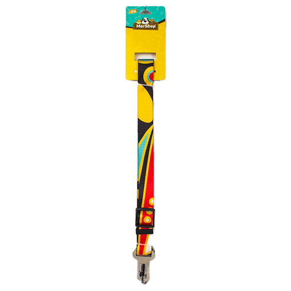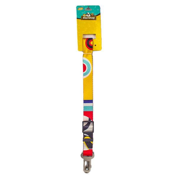 Correa estampada para ajustar al broche del carro. Material: Poliéster Color/Estampado: Morado mandalas. azul rombos, rojo huesos, amarillo. Disponible: Razas pequeñas, medianas y grandes.