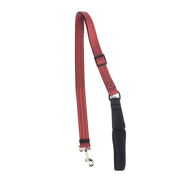 Correa plana con tejido reflectivo y hebilla ajustable. Material: Poliéster Color: Rojo. Disponible: Razas medianas y grandes.