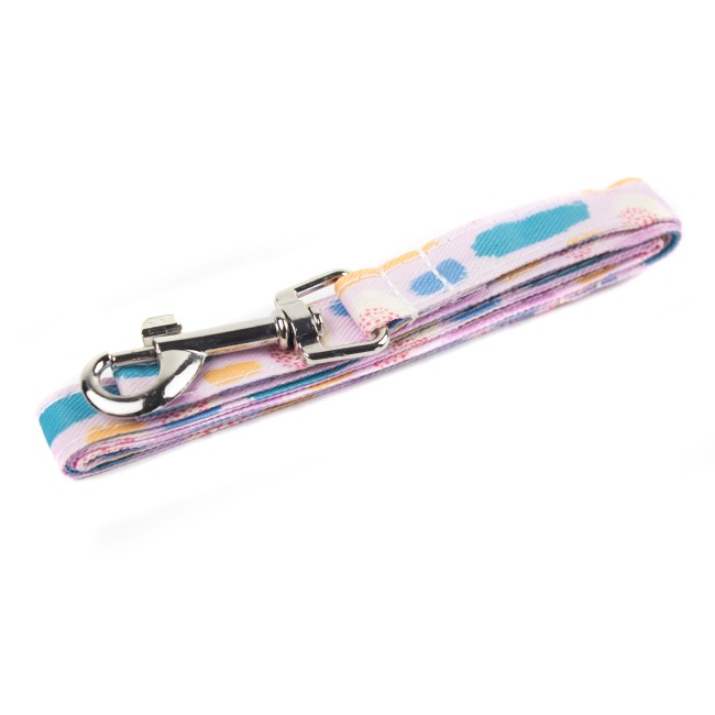 Correa plana con estampado para mascotas. Material: Poliéster Color: Morado, verde Disponible: Razas pequeñas y medianas