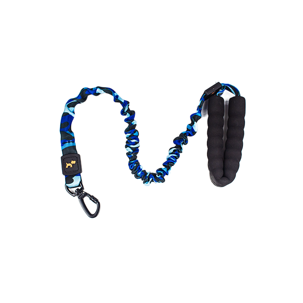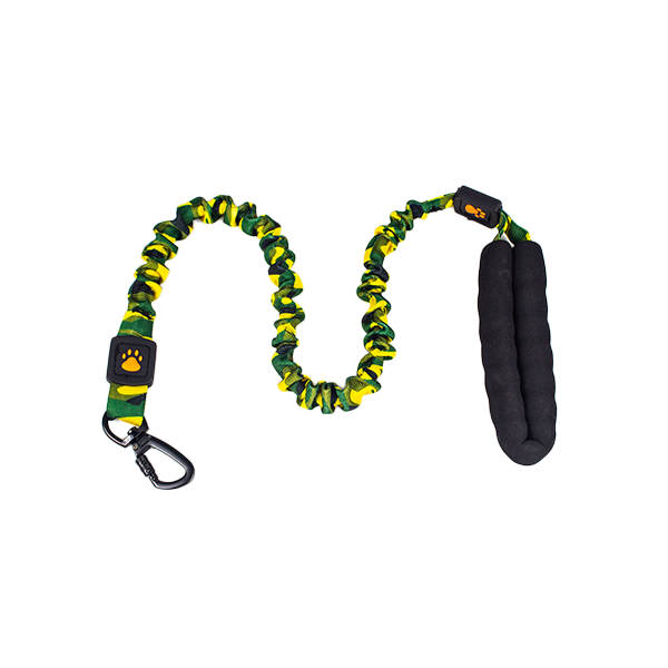 Correa resortada para mascotas, cuenta con estampado militar, mango ergonomico y mosquetón giratorio de seguirdad.. .Material: Poliéster Color: Militar beige, militar amarillo, militar azul rey, militar azul y gris Disponible: Razas pequeñas y medianas