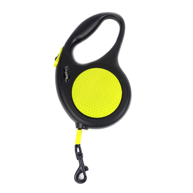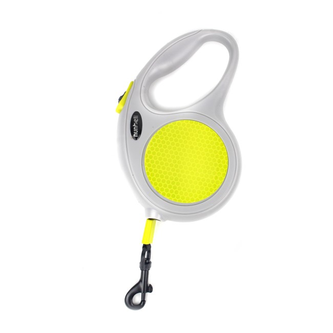 Correa retractil, cuenta con adhesivo reflectivo y botón para fijar la correa. Trae 5M de cuerda. Material: PVC, metal Color: Negro, gris Disponible: Razas pequeñas y medianas de hasta 20 kg. Medidas: Largo 5M * 20kg Talla M