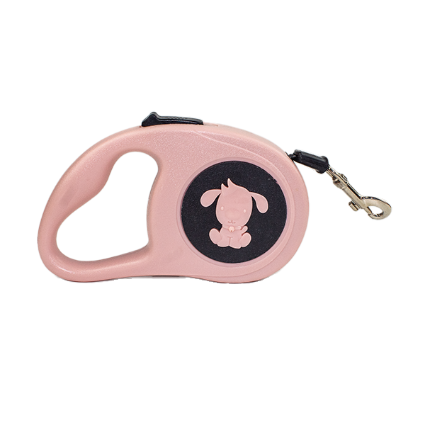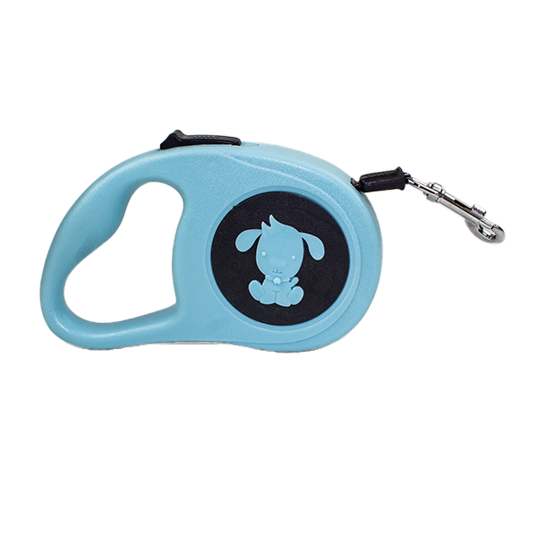 Correa retráctil unicolor, cuenta con estampado de perrito, botón superior y mosquetón para fijar al collar o arnés. Material: Plástico Color: Azul, rosa Disponible: Razas pequeñas y medianas