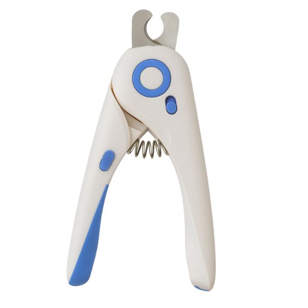 Corta uñas con luz led, cuenta con protector transparente. Material: Metal, Plástico Color: Azul, rosado Disponible: Razas pequeñas, medianas y grandes