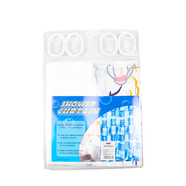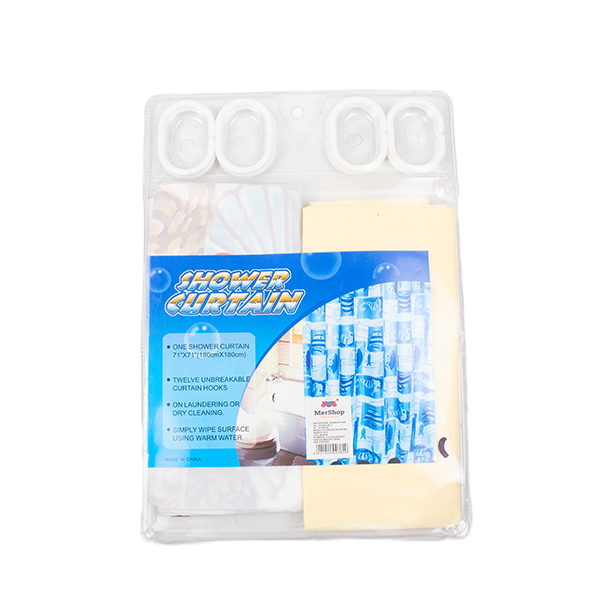 Cortina de dos piezas para baño Material: Plástico Color: Blanco con verde, azul con blanco, gris con blanco, beige con cafe, azul turqueza con blanco, mullticolor con blanco.