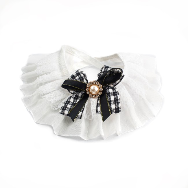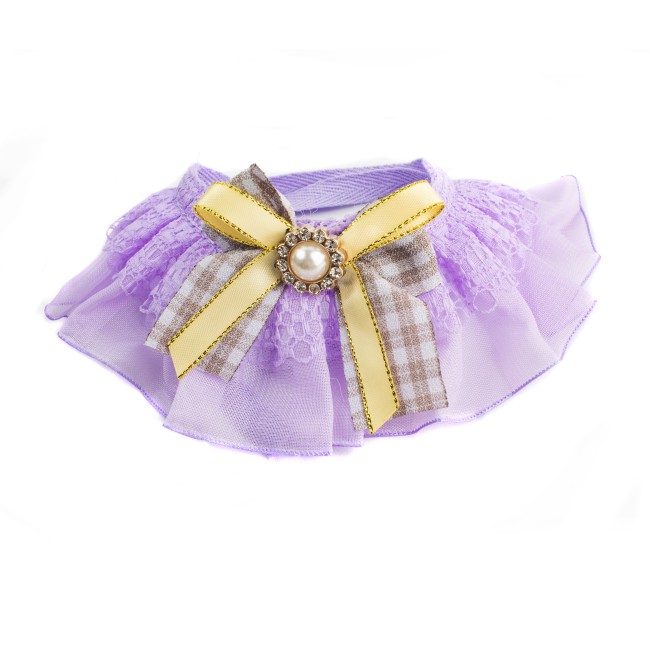 Collar con moño en el centro y cinta de tela ajustable. Talla L. Material: Poliéster Color: morado, rosado, negro, blanco Disponible: Razas pequeñas Medidas: Talla L Largo30 cm *Ancho12 cm