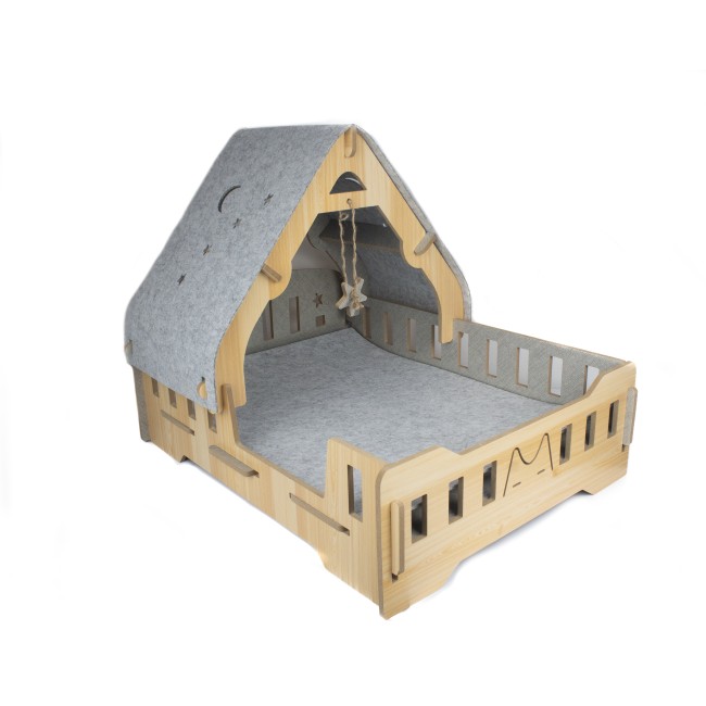 Cama para mascotas fácil de armar, con diseño de cuna, cuenta con forraje de tela y un tapete en el interior con el que su mascota podrá rascarse o afilarse las uñas. Material: MDF, tela Color: Disponible en la foto Disponible: Razas pequeñas Medidas: Largo 60cm* Ancho 45cm* Alto 47cm