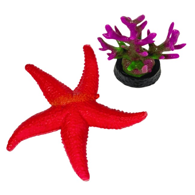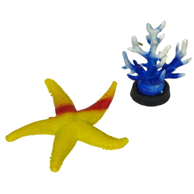 Decoración de acuario coral con estrella de mar. Material: Plástico Color: Disponible en la foto