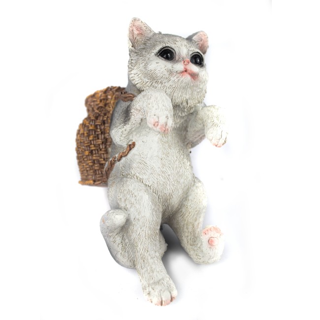 Decoración para acuario gato con canastilla. Material: Resina Color: Disponible en la foto.