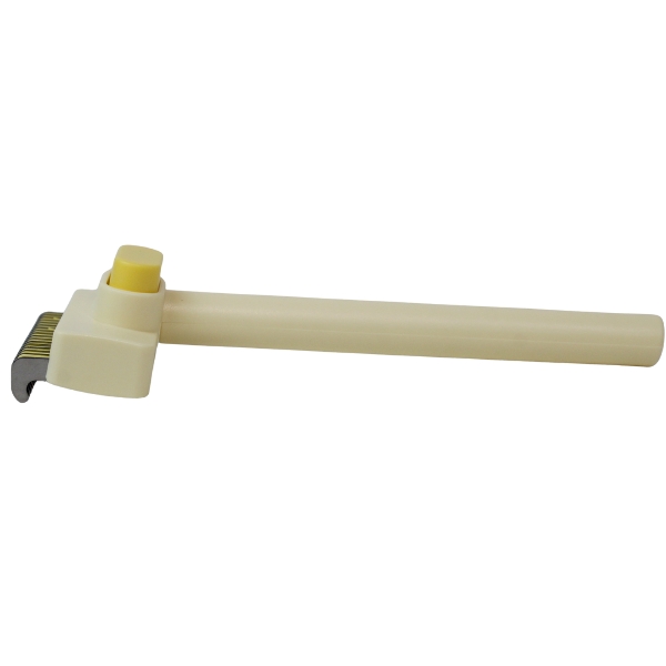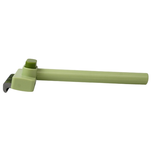 Deslanador con botón de expulsión de pelo que ayuda a peinar rápidamente los nudos. Adecuado para la depilación y bobinado del pelo. Material: Plástico, metal Color: Amarillo, verde Disponible: Razas pequeñas
