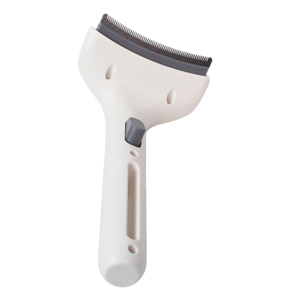 Deslanador de dientes finos, cuenta con botón para expulsar el pelo muerto. Material: Plástico, metal Color: Amarillo, blanco Disponible: Razas pequeñas, medianas y grandes