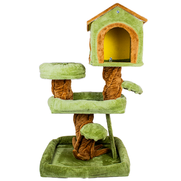 Gimnasio casa del árbol con acabado de felpa, cuenta con diferentes niveles y un condominio para descanso. Material: Poliéster Color: Disponible en la foto Disponible: Razas pequeñas