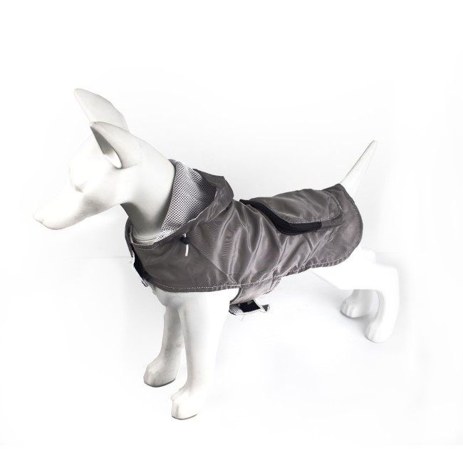Impermeable portatil para mascotas, cuenta con velcro ajustable y bolsillo doble función. “Material: Poliéster Color: Gris, negro, rosa, rojo DIsponible: Razas pequeñas y medianas.”