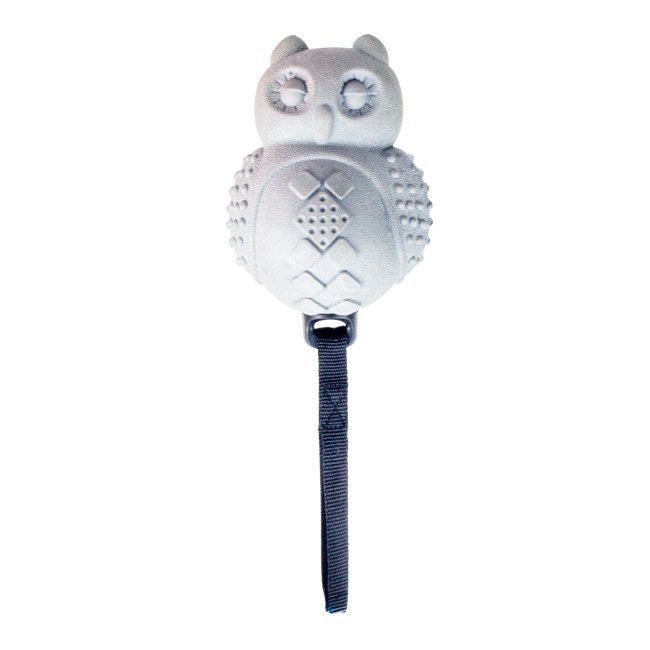 Juguete chillón en forma de buho. Trae cuerda. Material: Plástico Color: Amarillo con gris, azul con naranja, azul con verde. Disponible: Razas grandes