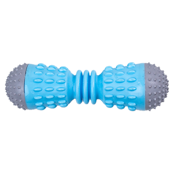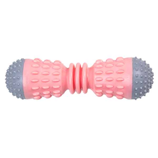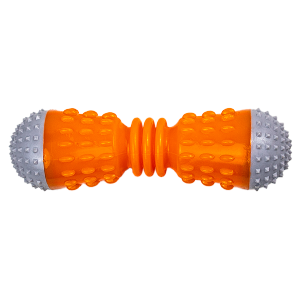 Juguete mancuerna chillona para mascotas. Material: Plástico Color: Naranja, verde, azul, rosado Disponible: Razas pequeñas y medianas