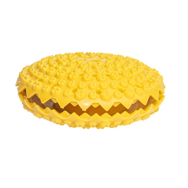 Juguete de premios para mascotas que combina rompecabezas con dispensador de golosinas. Material: Plástico Color: Amarillo, verde, rosado Disponible:Razas pequeñas, medianas y grandes.