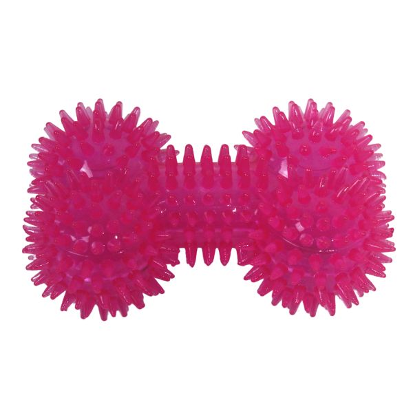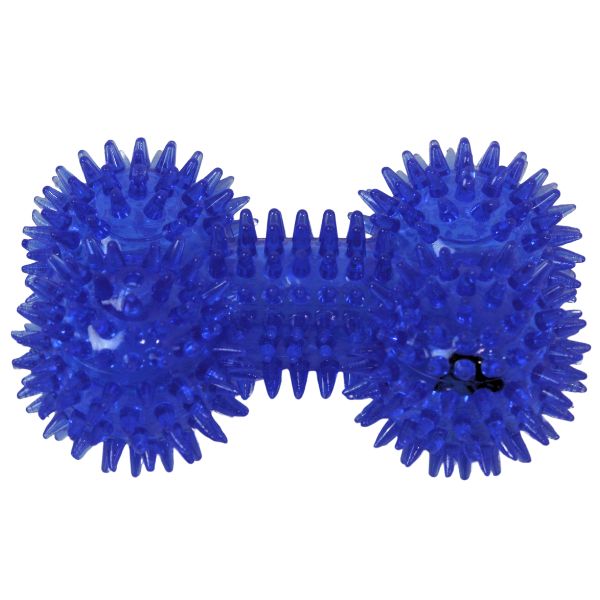 Hueso chillón, cuenta con una textura de púas, sonido y luz led interna. Material: Plástico Color: Azul, rosado, violeta Disponible: Razas pequeñas y medianas.