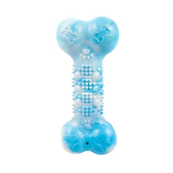 Juguete hueso, cuenta con sonido interno. Material: Plástico Color: Azul, rojo, verde, naranja Disponible: Razas medianas y grandes