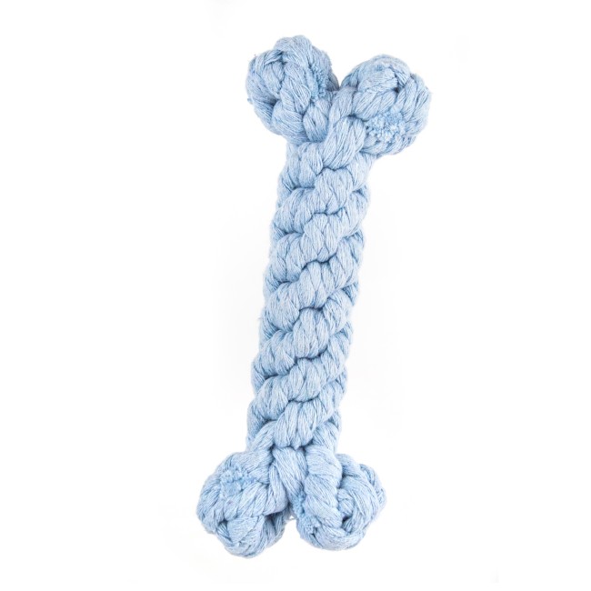 Hueso de tela para mascotas. Material: PoliƩster Color: Rosado con blanco, azul con rosado Disponible: Razas medianas.