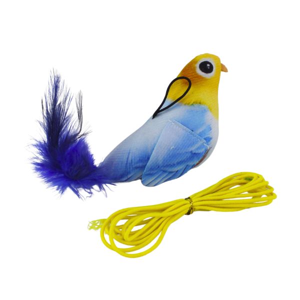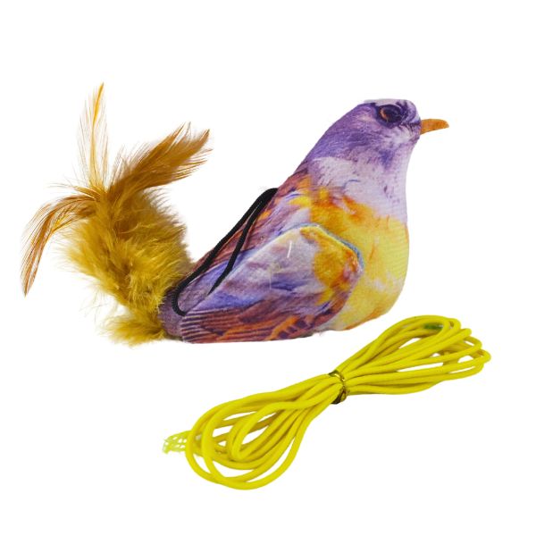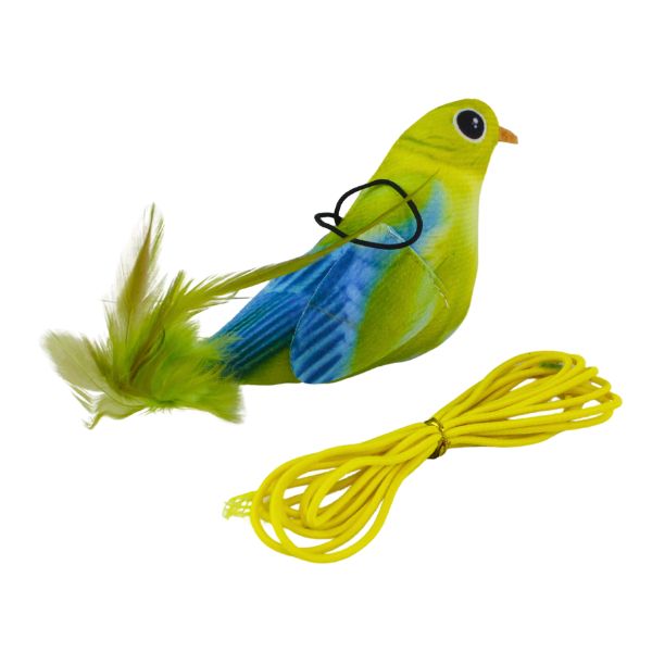 Juguete pájaro con sonido, cuenta con cuerda para amarrar y adhesivo para fijar en superficies planas. Material: Poliéster Color: Verde, amarillo Disponible: Razas pequeñas.
