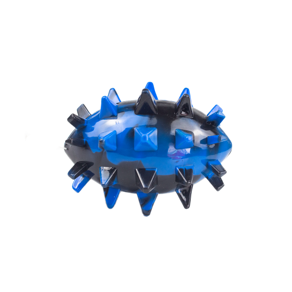 Juguete pelota, cuenta con sonido interno y superficie texturizada. Material: Plástico Color: Azul, naranja Disponible: Razas medianas y grandes.