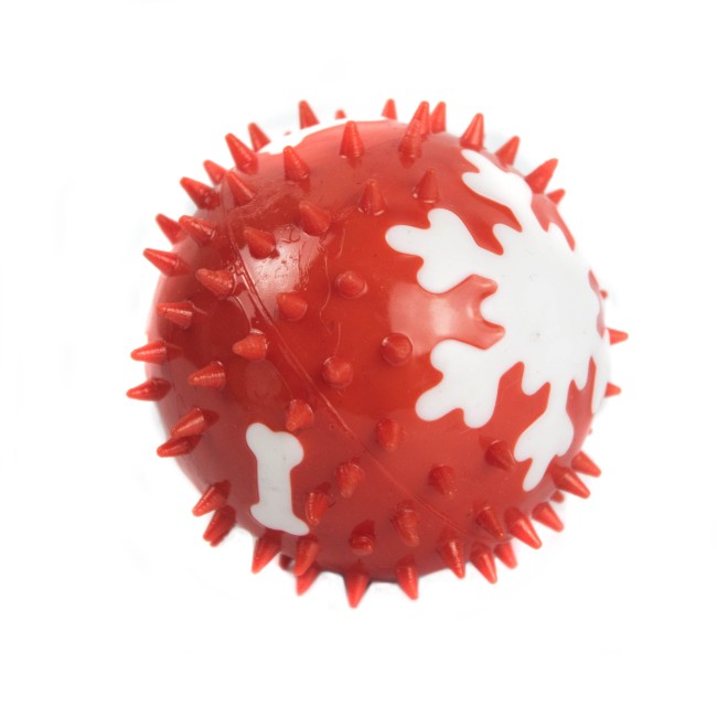 Juguete pelota chillona maciza con estampado de copo de nieve. Ayuda a eliminar el sarro. Material: Plástico Estampado: Verde, rojo, blanco Disponible: Razas medianas y grandes.