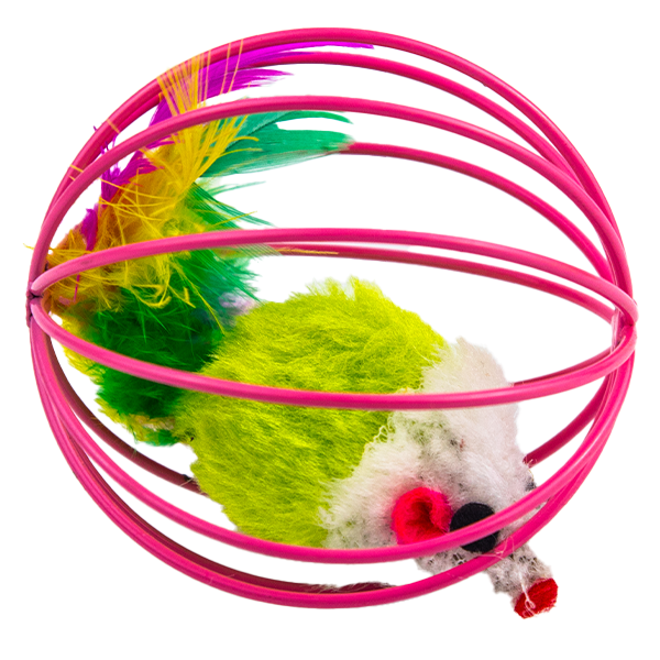 Juguete interactivo para tus gatos para hacerlos sentir más comodos. Material: Hierro, pluma. Color: Morado, rosa. Disponible: Razas pequeñas.