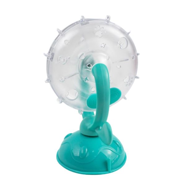 Juguete interactivo, cuenta con rueda giratoria, orificios dispensadores de snacks, abertura para poder introducir los premios y ventosa para adherir a superficies planas. Material: Plástico, caucho Color: Amarillo, azul, rosado, verde Disponible: Razas pequeñas.