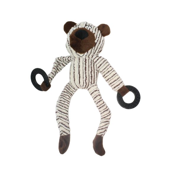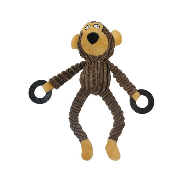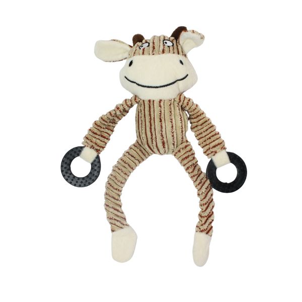 Juguete de tela para mascotas, cuenta con sonido chillón interno y aros de goma. Material: Poliéster Diseño: Mono, vaca, oso Disponible: Razas pequeñas y medianas