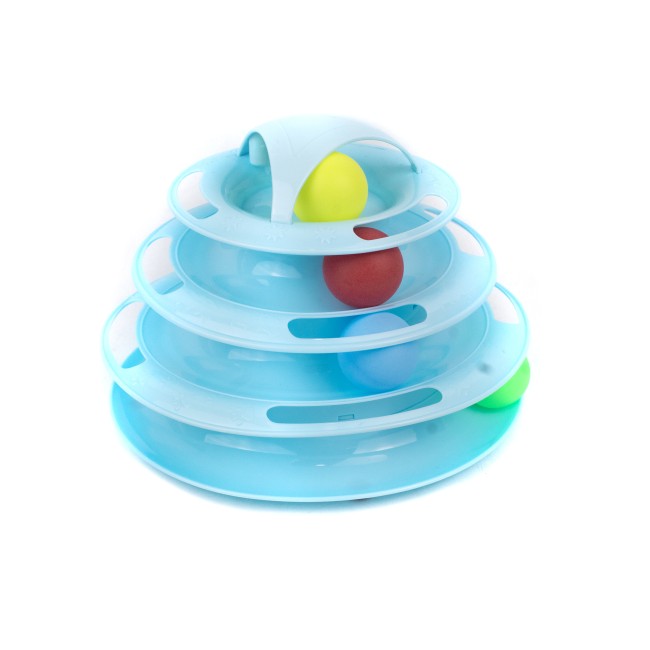 Juguete interactivo torre de pelotas, cuenta con aberturas especiales para que su mascota pueda interactuar con las pelotas distribuídas en los distintos niveles. Material: Plástico Color: Verde, rosado, azul Disponible: Razas pequeñas.