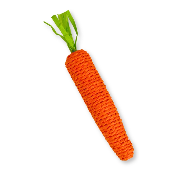 Juguete zanahoria de cuerda de papel para mascotas. Ideal para morder y arañar. Medida: 16 CM Material: Cuerda de papel Color: Disponible en la foto Disponible: Razas pequeñas