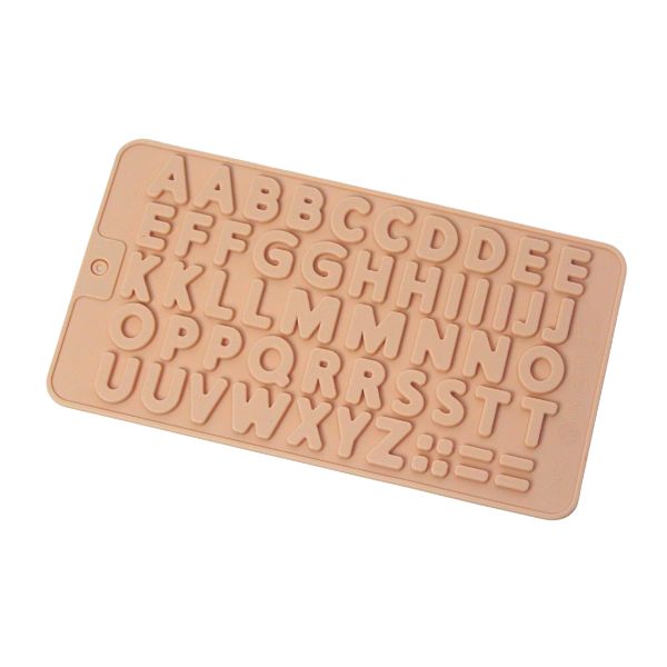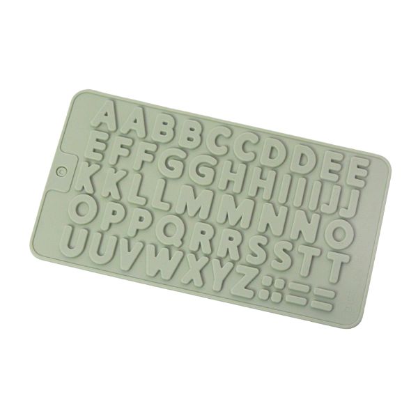 Molde del abecedario para repostería. Material: Silicona Color: Gris, verde, salmon