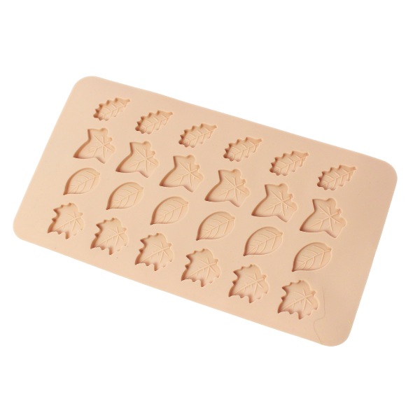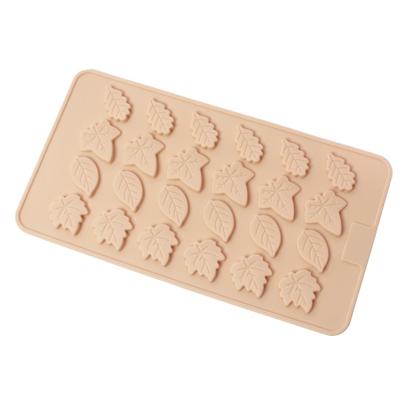Molde de chocolate de hojas. Material: Silicona Color: Gris, verde, salmon