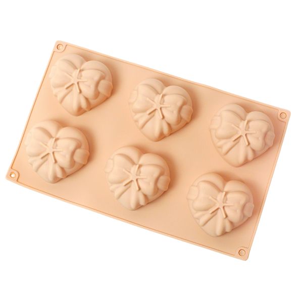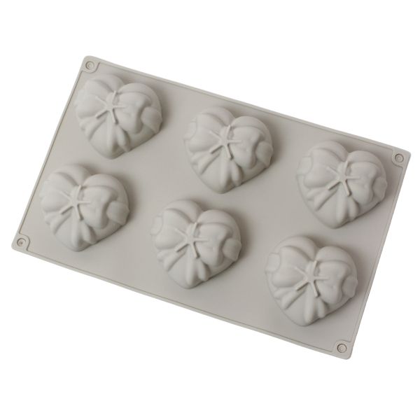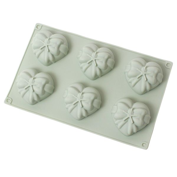 Molde de repostería corazones con moño. Material: Silicona Color: Gris, verde, salmon