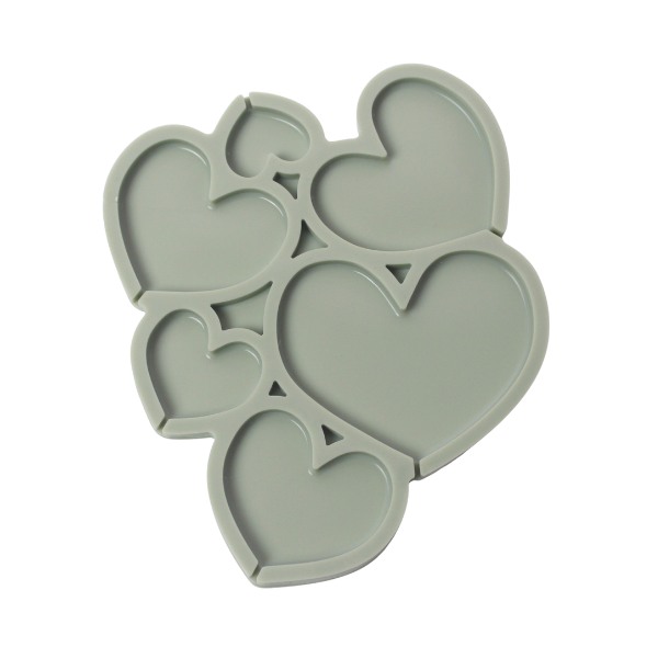 Molde de repostería corazones. Material: Silicona Color: Gris, verde, salmon