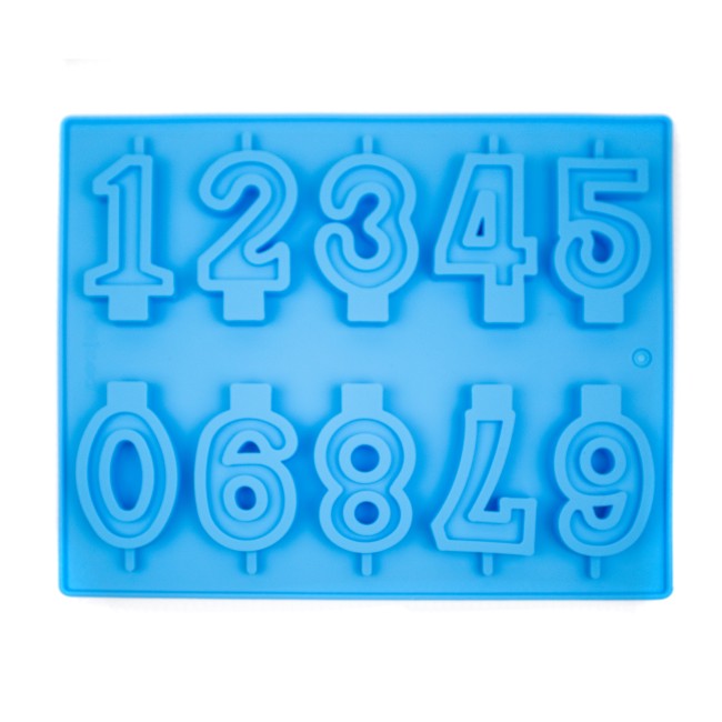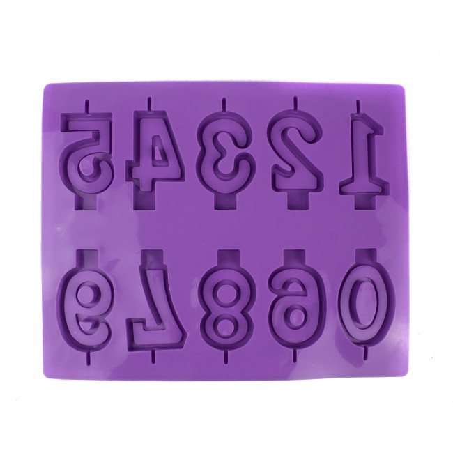 Molde de números para velas. Material: Silicona Color: Azul, morado, rojo