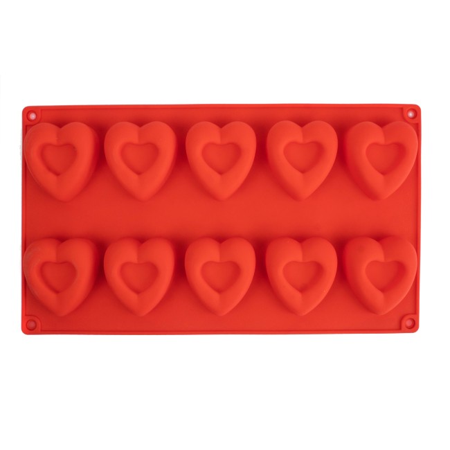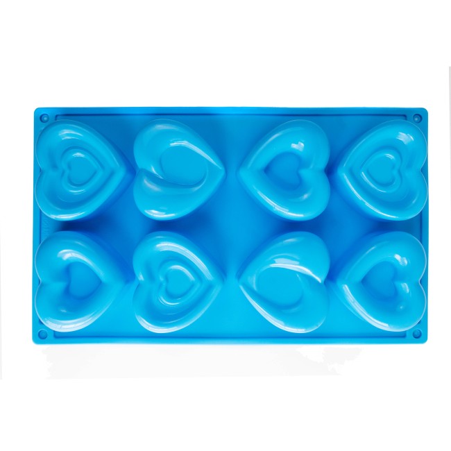 Molde de corazones. Material: Silicona Color: Rojo, azul, morado