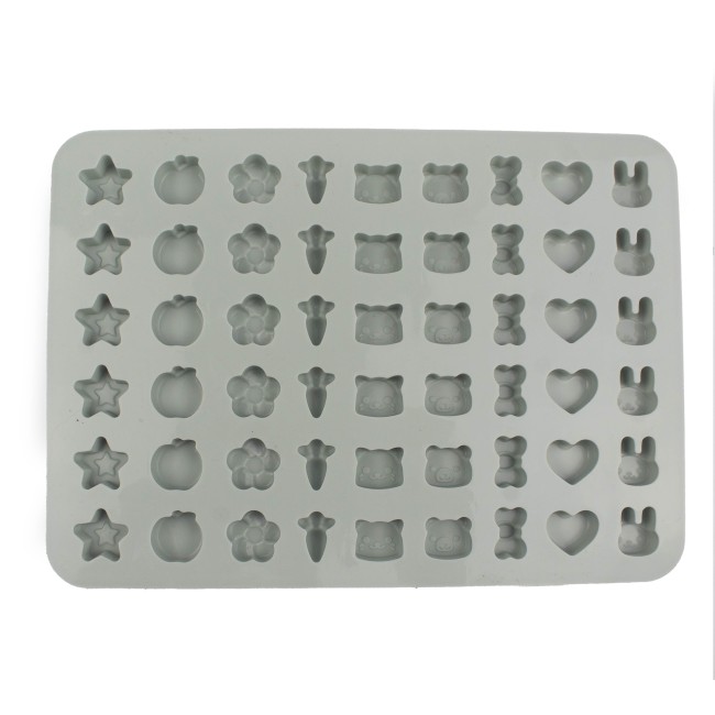 Molde de figuras variadas de repostería. Material: Silicona Color: Rosado, gris