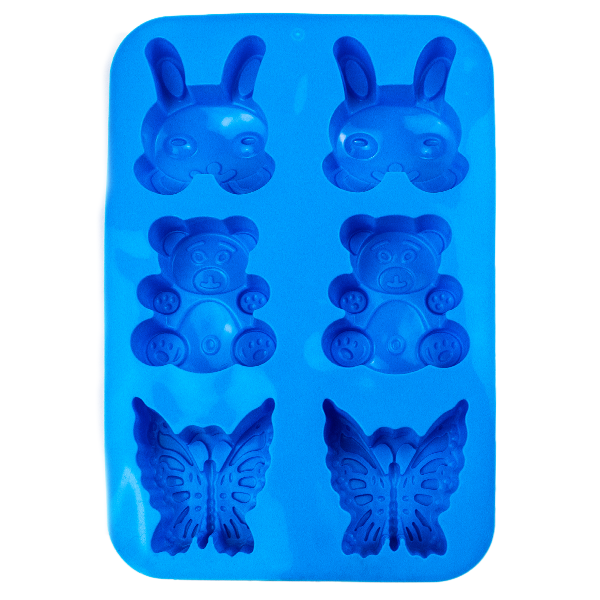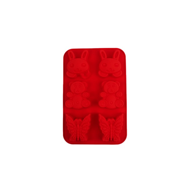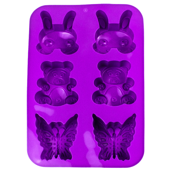 Molde en forma de animales para reposteria. Material: Silicona Color: Rojo, azul, morado.